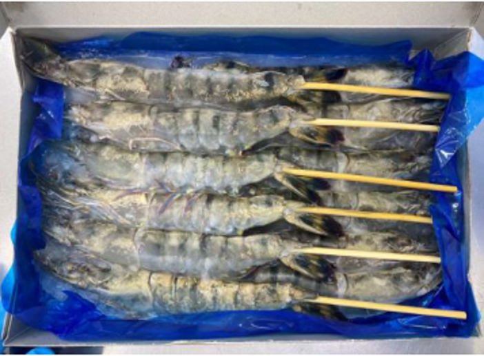 本商品は高級海老として人気なブラックタイガーを、串打ちした製品です。脱皮直後の海老となりますので、海老全体が柔らかく、加熱調理後は頭から尻尾まで丸ごとお召し上がっていただくことができます。また、加熱後に串を抜いていただければ海老が真っ直ぐ綺麗な状態で盛り付けをすることができます。焼き物、フライ、天麩羅、煮物など様々な用途でご使用いただけます。1箱に12本入りの使いやすい規格となっており、必要な分だけ使用することが出来ます。下処理済みですので、催事や宴会など一度に大量の調理を必要とする場面において、大幅な時短効果が期待できます。春先の花見シーズンや夏祭りでの販売など、大型連休やイベント時には特に引き合いが強く、一般のお客様にも馴染みのある製品となっております。ブラックタイガー特有の弾力ある食感を活かして、様々な料理にご活用ください。